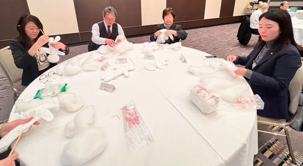 Chair TAKAHASHI explained the process of making Kiwanis dolls.